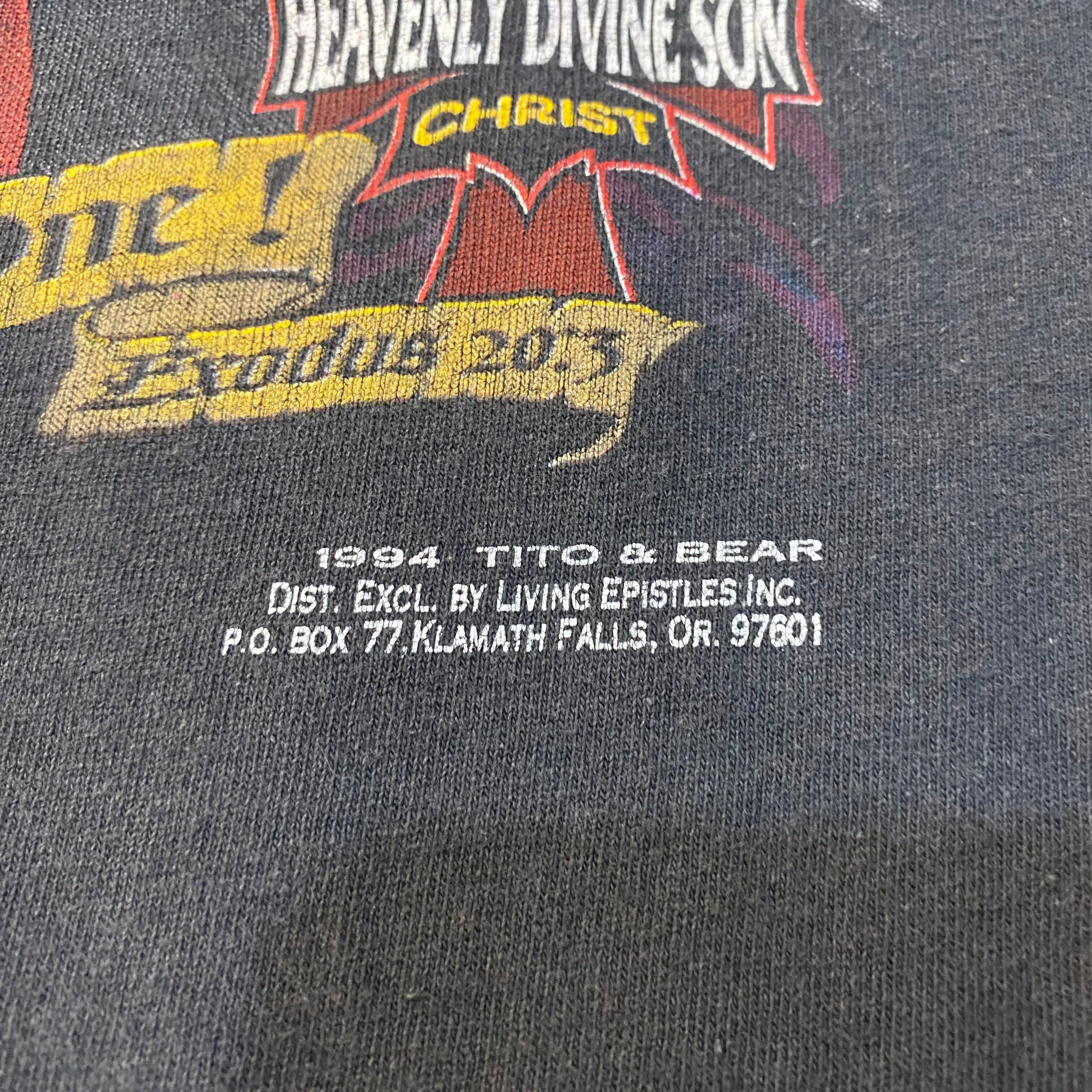 L 90'S HEAVENLY DIVNE SON JESUS BIKER PRINT PARODY T-SHIRT